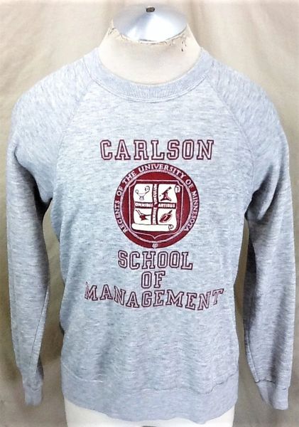 Vintage 80 S Carlson School Of Management Large Short Retro Crew Neck Sweatshirt Gray Our City Vintage