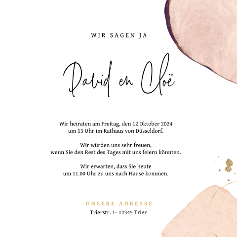 Einladung Wir sagen ja!. Die standesamtliche Trauung findet um 11 Uhr im XYZ statt Anschließend feiern wir im Gasthof XYZ Wir freuen uns auf Euer Kommen!. Ich gestalte Ihnen die besondere Papeterie für den schönsten in Ihrem Leben.