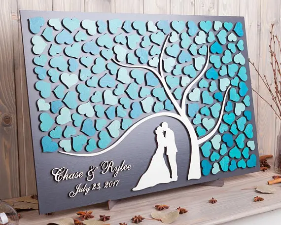 Personalized 3d Wedding Guest Book Alternatives Tree Of Hearts Wedding Guestbook Wooden Tree Of Life Wedding Gift Wedding Decor Signature Guest Books Aliexpress