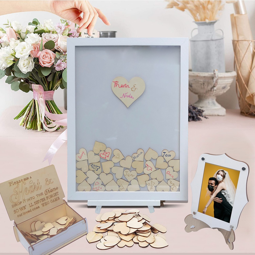 Wedding Guest Book Premium Set Of Alternative Drop Top Guestbook Frame Display Easel Wooden Hearts Guest Box Ribbon Guest Book Small Photo Frame Top Wedding Gift Shopee Singapore