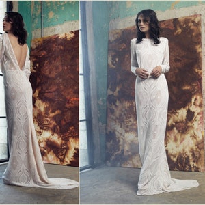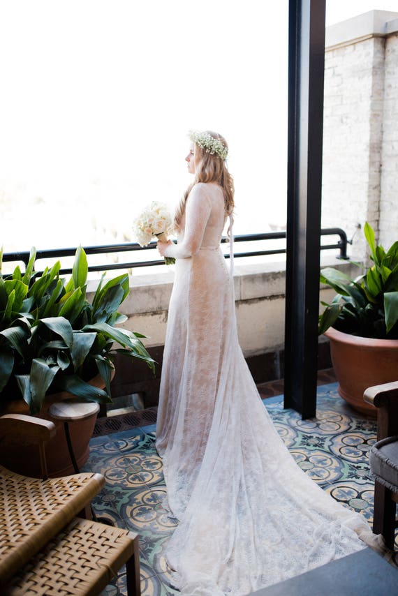 Long Sleeve Wedding Dress Vintage Style Wedding Dress Low Etsy