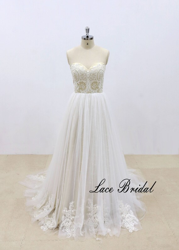 Vintage Inspired Wedding Dress With Light Gold Lace And Etsy