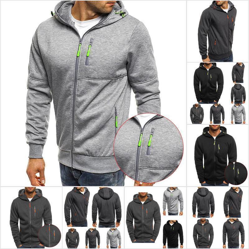 Homsi Mens Zip Up Hoodies Jacket Sweatshirt Hooded Sports Gym Long Sleeve Coat Tops Poo Shopee Singapore