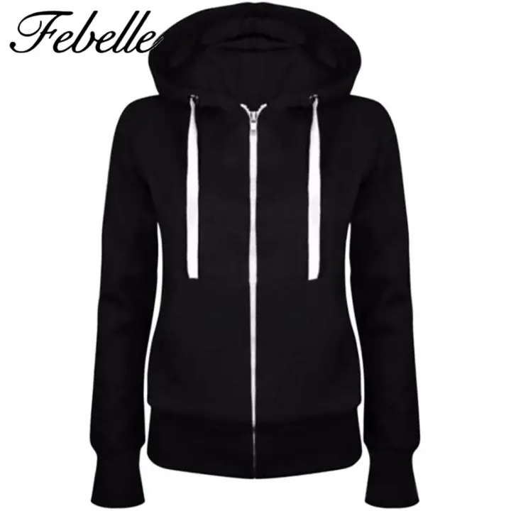 Febelle Fashion Women Solid Zip Up Hoodies Sweatshirt Hooded Long Sleeve Coat Tops Lazada Singapore