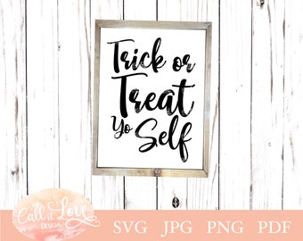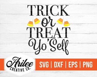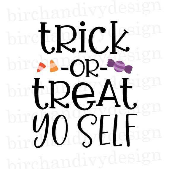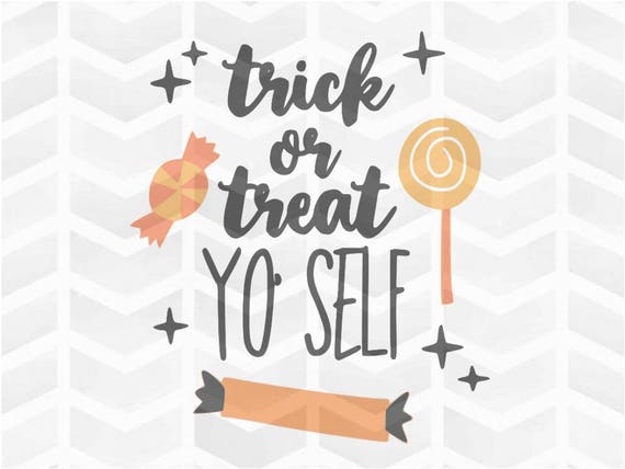 This Trick or Treat Yo’ Self design is so cute and would look awesome on so many different projects!. It's time for Treat Yo Self Tuesday!. Get creative with some sweet SVGs and treat yo’self with a little crafting But don’t forgetthere’s candy out there and it’s waiting for you—go grab before all the kids snatch it up!.
