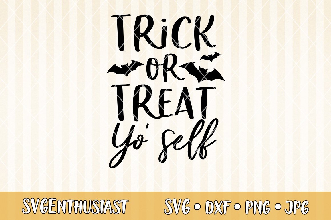 Free Download Trick or Treat Yo'Self SVG Free SVG Cut Files SVG cut files are a graphic type that can be scaled to use with the Silhouette Cameo or Cricut An SVG's size can be increased or decreased without a loss of quality All of our downloads include an image, Silhouette file, and SVG file. Trick or Treat Yo Self Halloween SVG DXF EPS PNG Cut File • Cricut • Silhouette This listing is for a SVG DXF EPS and PNG cutting file This listing is for an Instant Download The file will be emailed to you and become instantly ready for download once your payment has been confirmed Due to the nature of the d. This SVG cut file is perfect for making shirts, bags, and Halloween decor!.
