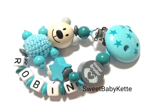 Schnullerkette Mit Namen Junge Bar Stern Kleiner Bruder Etsy