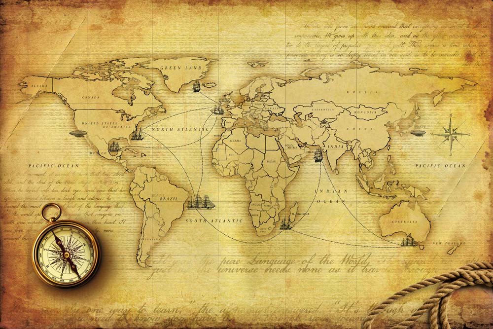Compass On Vintage World Map Wall Mural Wallpaper Canvas Art Rocks