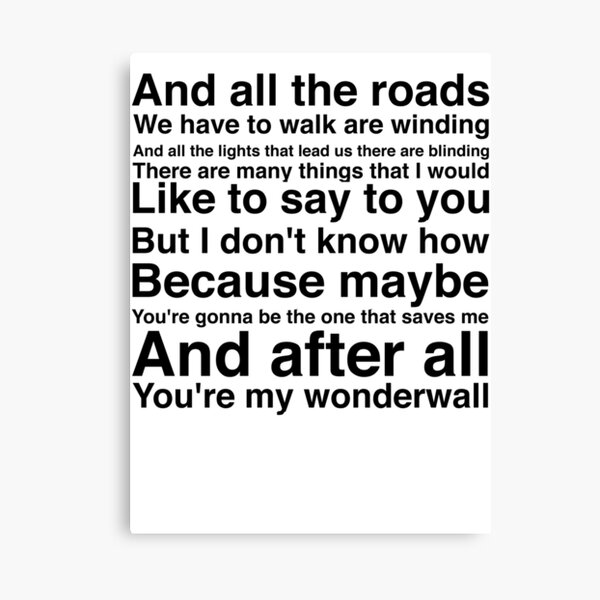 Wonderwall Oasis Lyrics Song Verse Print Canvas Word Wall Art Typography Words Ebay