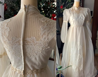 70s Victorian Wedding Gown With Juliet Sleeves Train Luxie Vintage