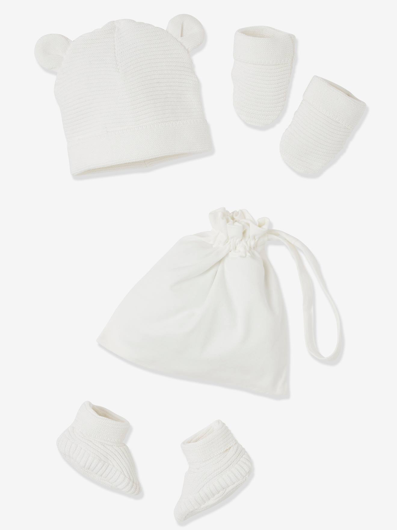 Vertbaudet Baby Set Fur Neugeborene Mutze Faustlinge Schuhchen In Wollweiss
