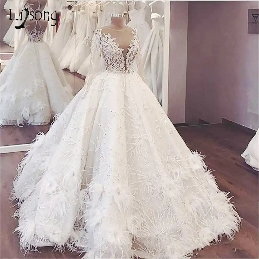 Real Image Feather Full Sleeves Wedding Dresses Floral Lace Beaded Vintage Bridal Dresses Plus Size Wedding Gowns Wedding Dresses Aliexpress