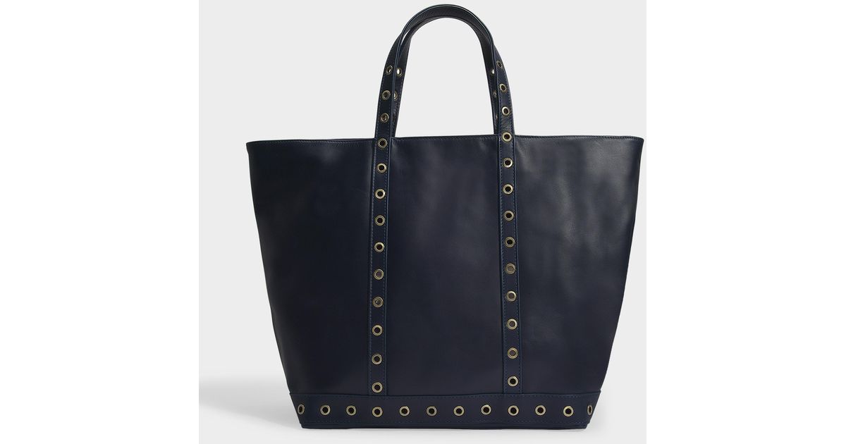 Vanessa Bruno Medium Cabas Tote Bag In Navy Leather And Eyelets In Blue Lyst