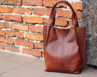 Cognac Brown Leather Tote Leather Tote Bag Leather Purse Etsy