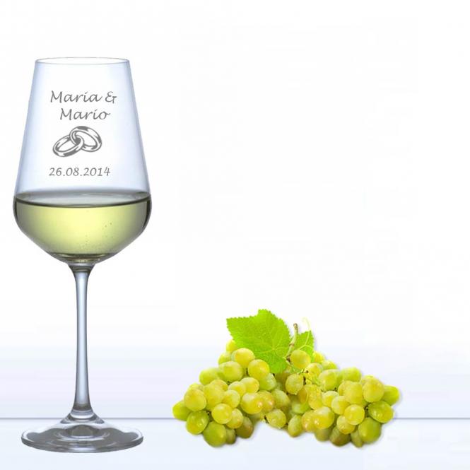 Weinglas Mit Ringen Namen Und Datum Graviert Als Hochzeitsgeschenk