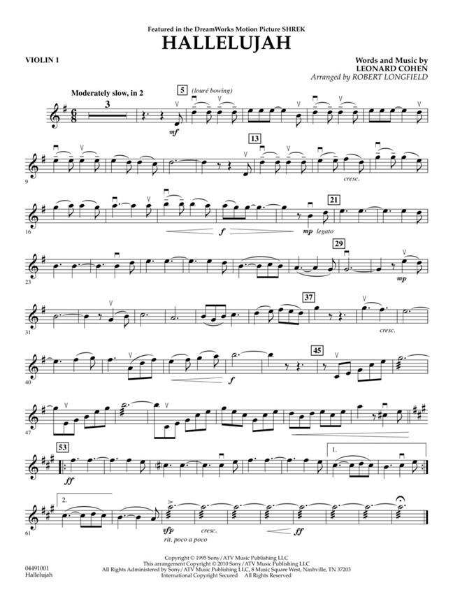 Download Digital Sheet Music Of Leonard Cohen Hallelujah For Violin