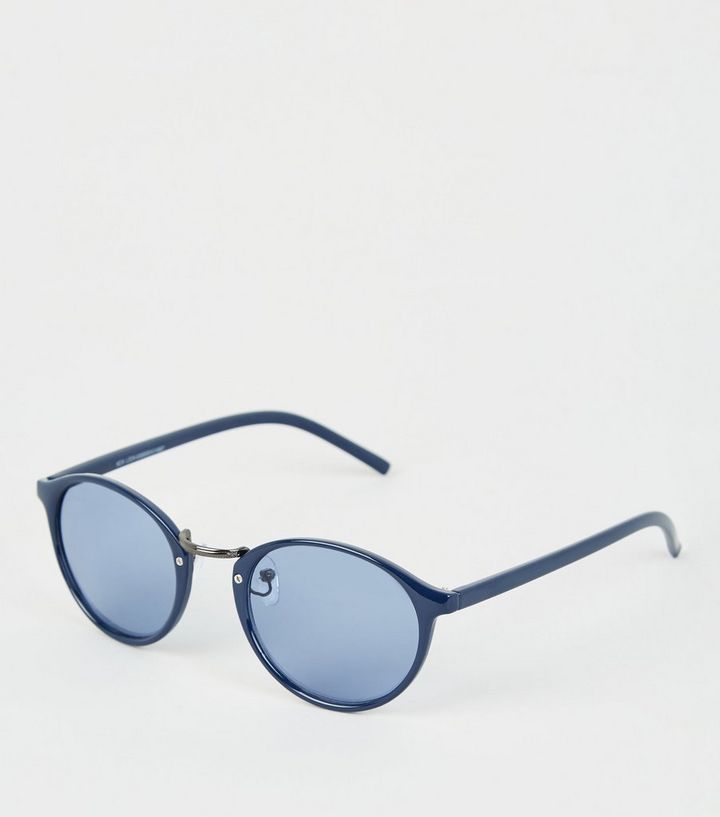 Marineblaue Sonnenbrille Mit Runden Glasern Und Metallsteg New Look