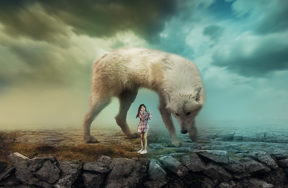 Photomanipulation Small Little Girl And Big Wolf By Goldow On Deviantart