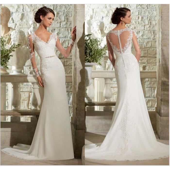 Robe De Mariee Sirene Manches Longues Achat Vente Pas Cher