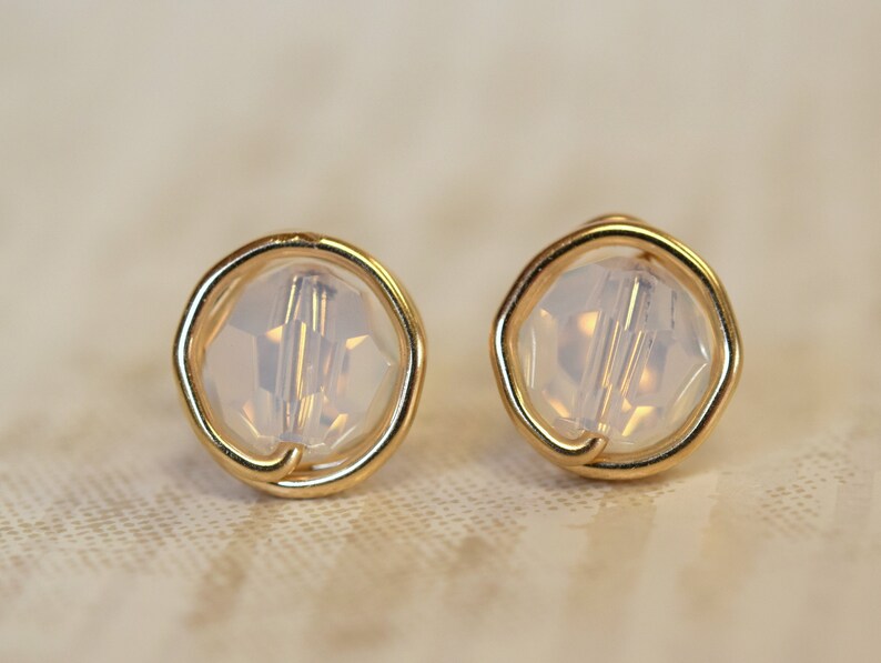 Gold Stud Earrings White Opal Swarovski Crystal Post Etsy