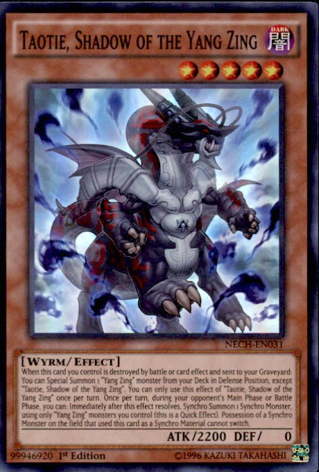 1 Suanni, Fire of the Yang Zing 1 Bian, Earth of the Yang Zing 2 Chiwen, Light of the Yang Zing 1 Destrudo the Lost Dragon’s Frisson 1 Armageddon Knigh 1 Crusadia Arboria 1 Jet Synchron 3 Vessel for the Dragon Cycle 2 Flawless Perfection of the Tenyi 1 Yang Zing Path 2 Instant Fusion 1 Foolish Burial 1 Harpie’s Feather Duster 2 Fists of. The Yang Zing engine completely ceases to function without Denglong, he was the heart and soul of the deck True King Dinos without Yang Zings are still somewhat capable;. You can target 1 "Yang Zing" monster you control and 1 card your opponent controls;.