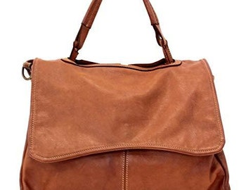 Made In Italy Damen Echt Leder Shopper Tasche Ledertasche Beuteltasche Daisy4 Cognac