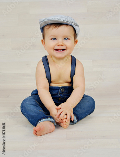 Frohlicher Susser Baby Junge Sitzt Auf Dem Boden Buy This Stock Photo And Explore Similar Images At Adobe Stock Adobe Stock