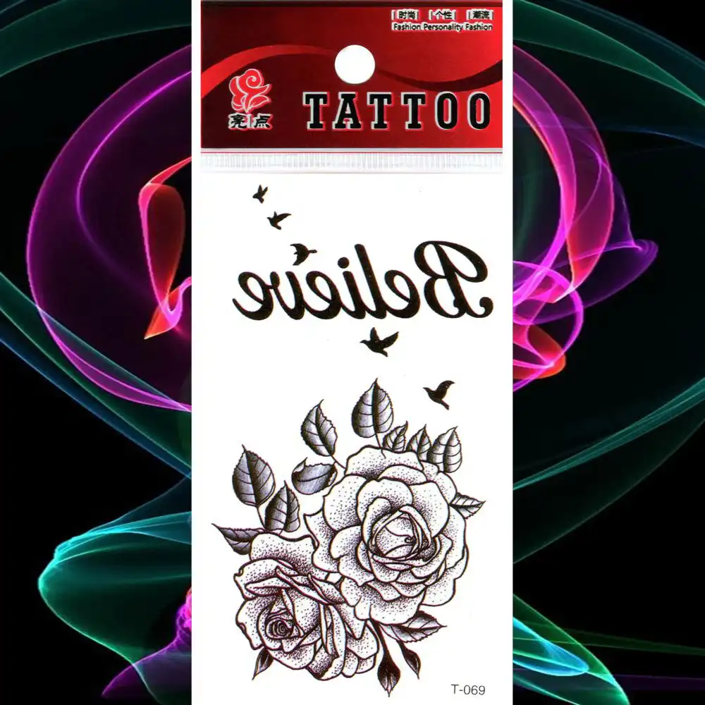 Wasserdichte Tattoo Schwarz Rose Temporare Tattoos Aufkleber Vogel Gefalschte Tatto Frauen Madchen Korper Brust Arm Kunst Glauben Flash Tatouage Temporare Tattoos Aliexpress