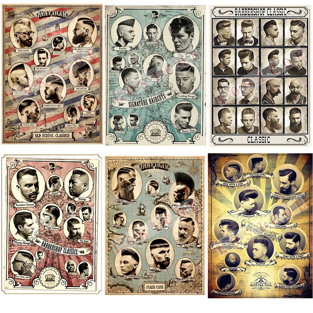 Popular Hairstyle Tattoo Shabby Chic Vintage Inkjet Printing Kraft Paper Poster Wall Stickers Barber Shop Home Decoration Wall Stickers Aliexpress
