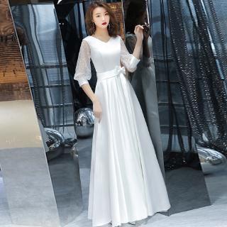 Women White Evening Dress Models French Party Dress Mid Sleeve Dress Slim Dress White Wedding Dress Piano Show Bridesmaid Dresses Long Sleeved Dress Evening Dancing Dress Shopee Singapore