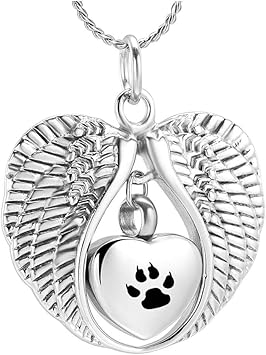 Kliy Urnen Asche Engelsflugel Mit Pfotenabdruck Halskette Feuerbestattung Schmuck Fur Asche Anhanger Herz Urne Memorial Halskette Fur Hund Katze Andenken Anhanger Mit Kette Amazon De Haustier