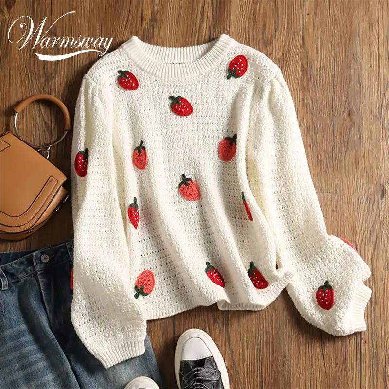 Nette Kawaii Erdbeere Muster Damen Pullover Koreanischen Stil Lose Kurze Susse Beilaufige Gestrickte Warme Crochetted Top C 236 Pullover Aliexpress