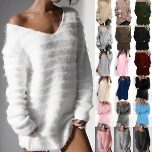Pullover Strick Neu Damen Pullover Warm Gestrickt Kaschmir Nerz Pullover Furry Lose Tops Jumper Omnia Ae