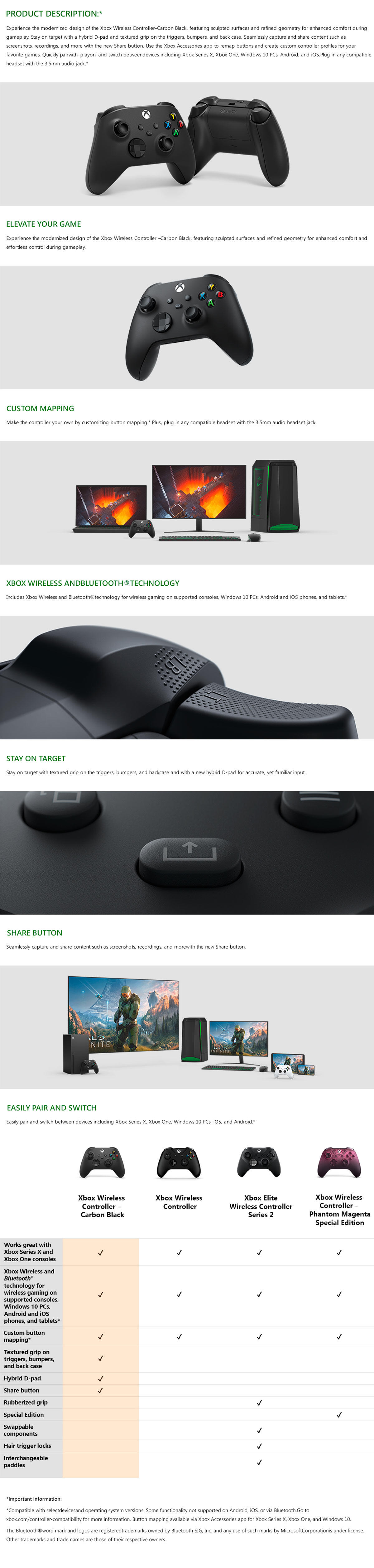 The controller’s buttons, including the new Share button, can be custom mapped just the way you like using the Xbox Accessories app Set the Share button to capture screenshots, start/stop recording, or even to record what just happened, then share your best, worst or funniest moments with friends and followers right from the console dashboard or your Android phone with the Xbox app for mobile. Our controller options are of the highest quality along with many options being available only at KwikBoyModzcom Customize your controller from the color of your Guide Button LED down to the menu/options buttons Every option is made to be chosen individually to enable you to mix and match designs and colors. Create a custom controller experience that is uniquely yours Designed primarily to meet the needs of gamers with limited mobility, the Xbox Adaptive Controller features large programmable buttons and connects to external switches, buttons, mounts, and joysticks to help make gaming more accessible on Xbox One consoles and Windows 10 PCs.