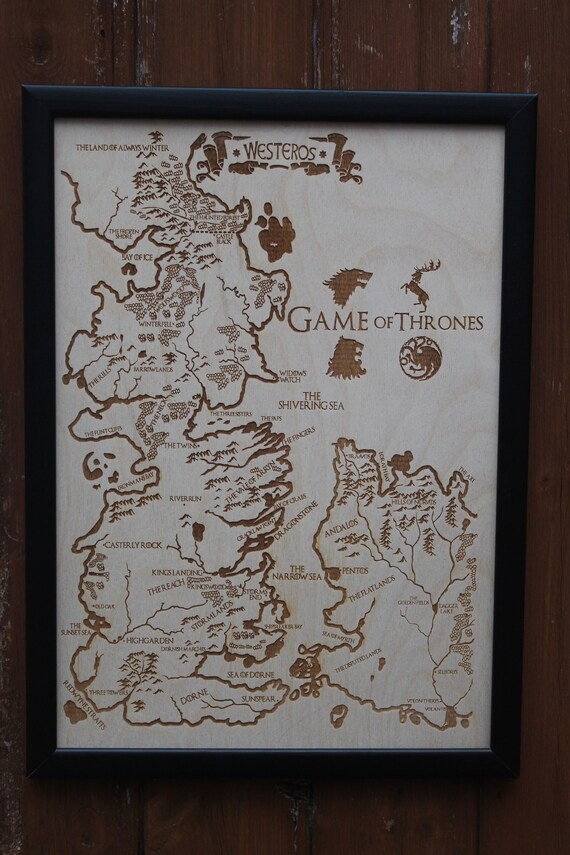 Wooden Westeros Map Engraved Into The Wood Game Of Thrones Etsy