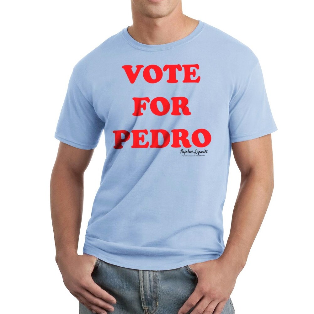 "Pedro was given a ‘Vote for Pedro' tshirt shortly after the movie came out When he was discussing running for office, the ‘Vote for Pedro' slogan was frequently brought up at various events and. Description Even if you don't have a sweet bike, you can be really good at hooking up with chicks with this Vote For Pedro Napoleon Dynamite tshirt This shirt is designed to look just like the shirt that Napoleon Dynamite wore to support his friend Pedro, who was running for class president For any fan of the 04 comedy Napoleon Dynamite, this Vote For Pedro tshirt is a must have. Design 'Vote For Pedro' on Men's TShirt in white more colours, size S6XL at Spreadshirt » customizable easy returns.