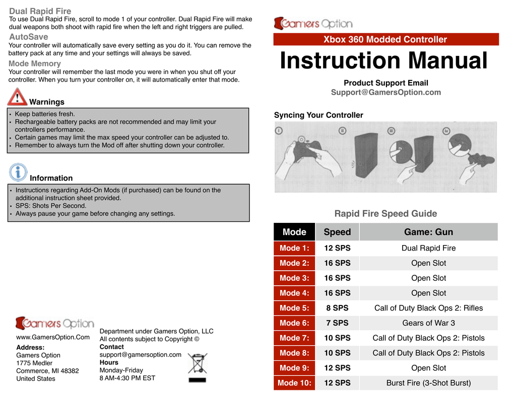 Xbox 360 10 Mode User Manual Gamerzicon Com Your Leader For Ps3 Xbox 360 Rapid Fire Modded Controllers