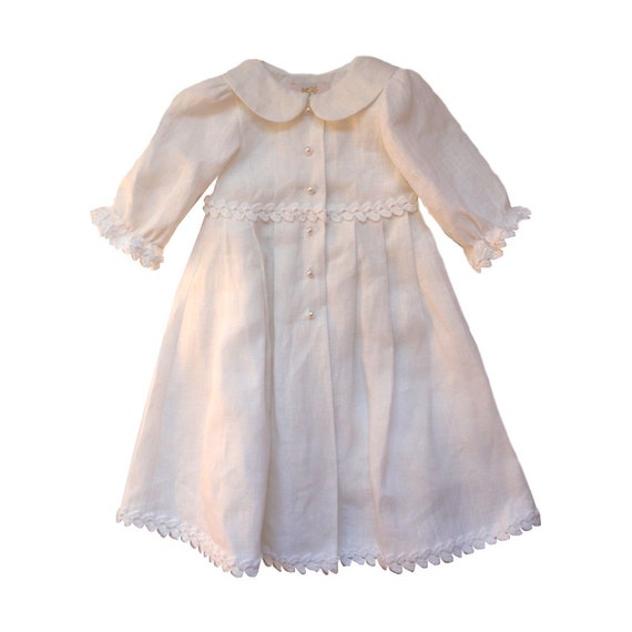 Leinen Weiss Taufe Kleid Baby Madchen Leinen Kleid Weisses Etsy