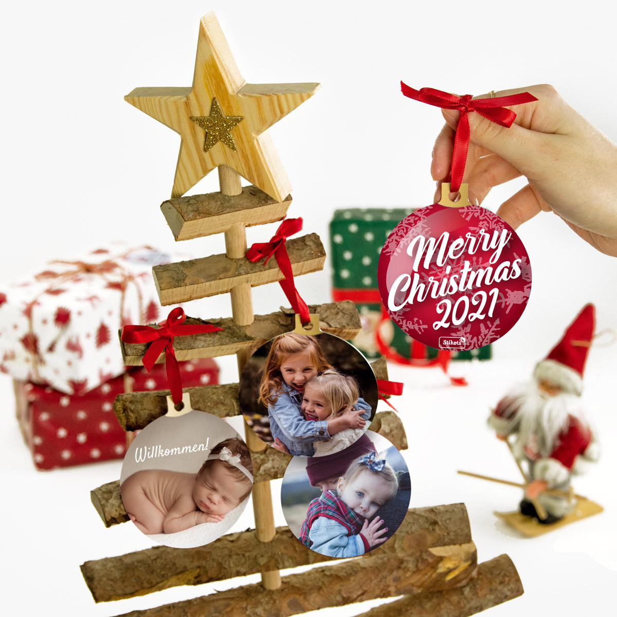 Schmücken Sie Ihren Weihnachtsbaum oder Ihr Haus mit personalisierten Weihnachskugeln mit eigenem Foto, Logo oder Text!.