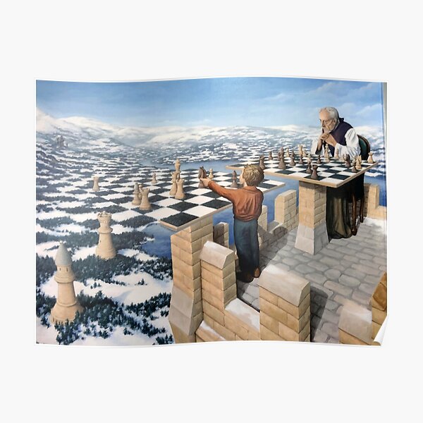 Rob Gonsalves Chalkboard Universe M C Escher Surrealism Surrealist Art Painting Banksy Dali Poster By Bufumofo Redbubble
