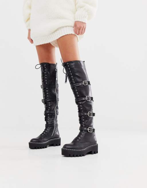 Lamoda Schwarze Auffallige Overknee Stiefel Zum Schnuren Asos