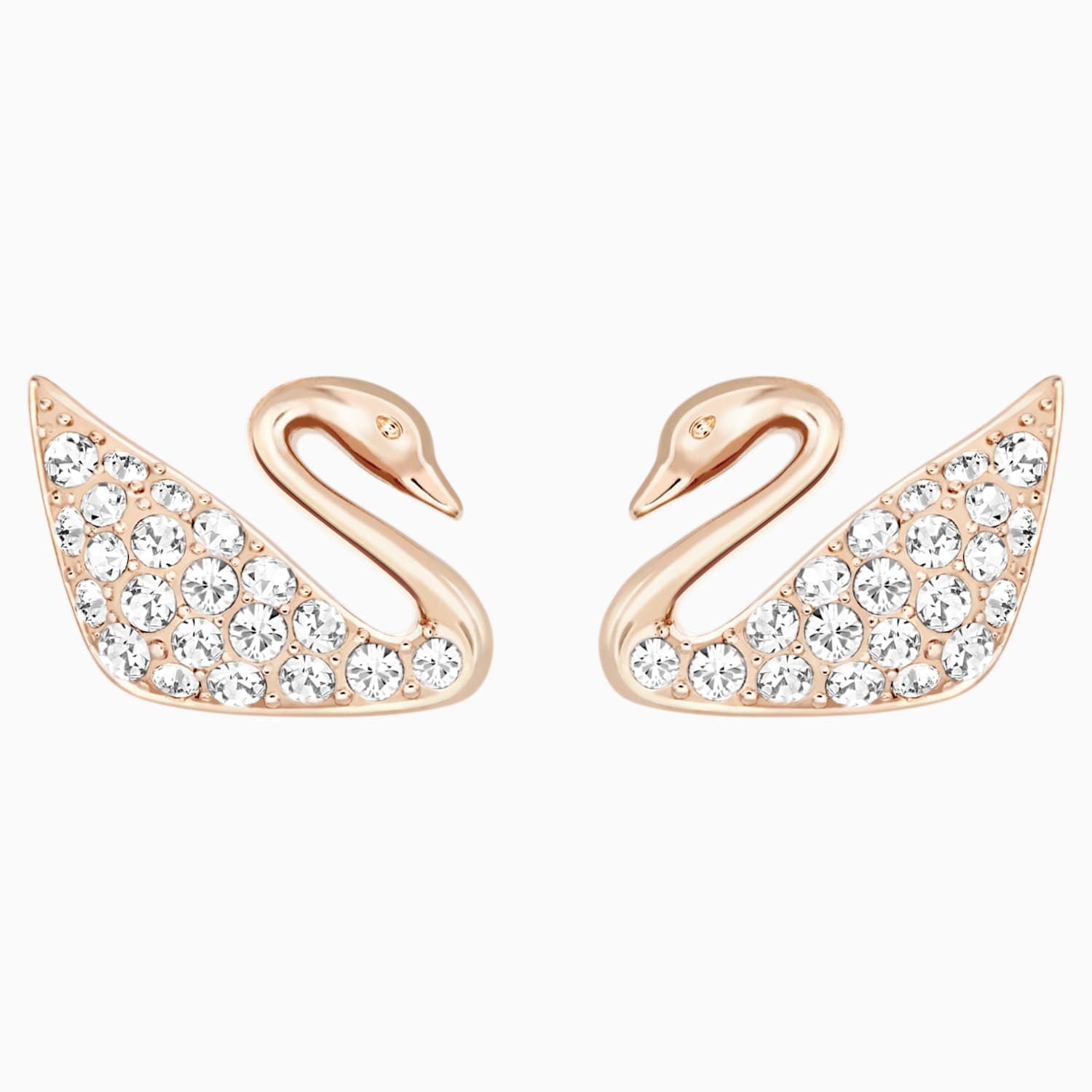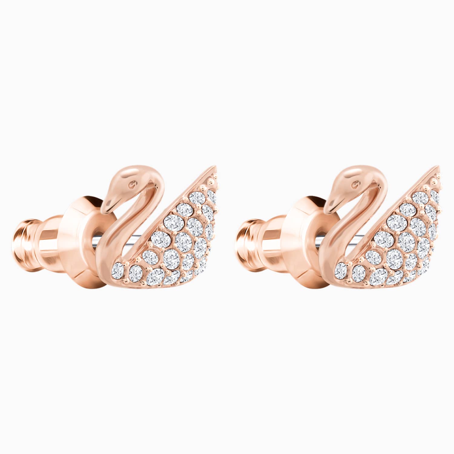 Swan Pierced Earrings White Rose Gold Tone Plated Swarovski Com