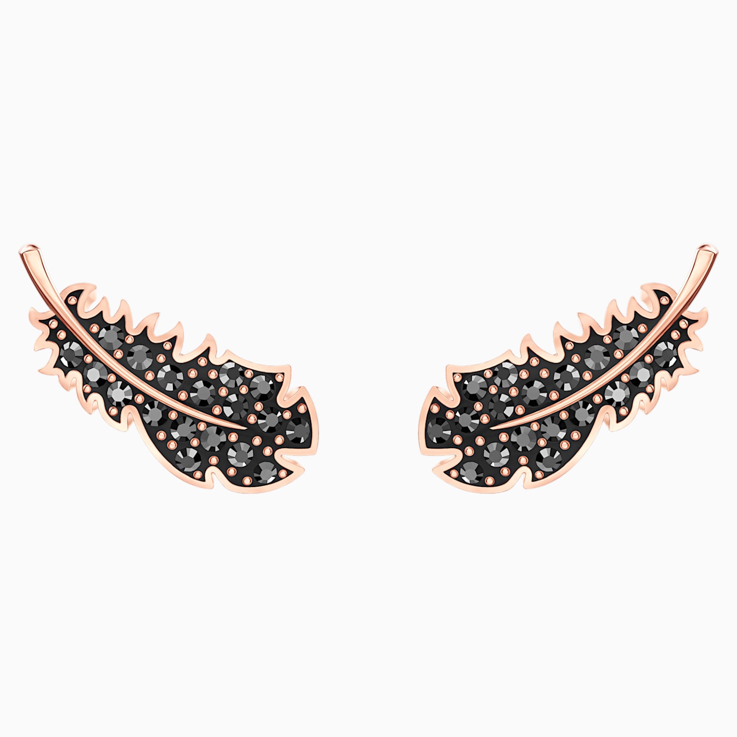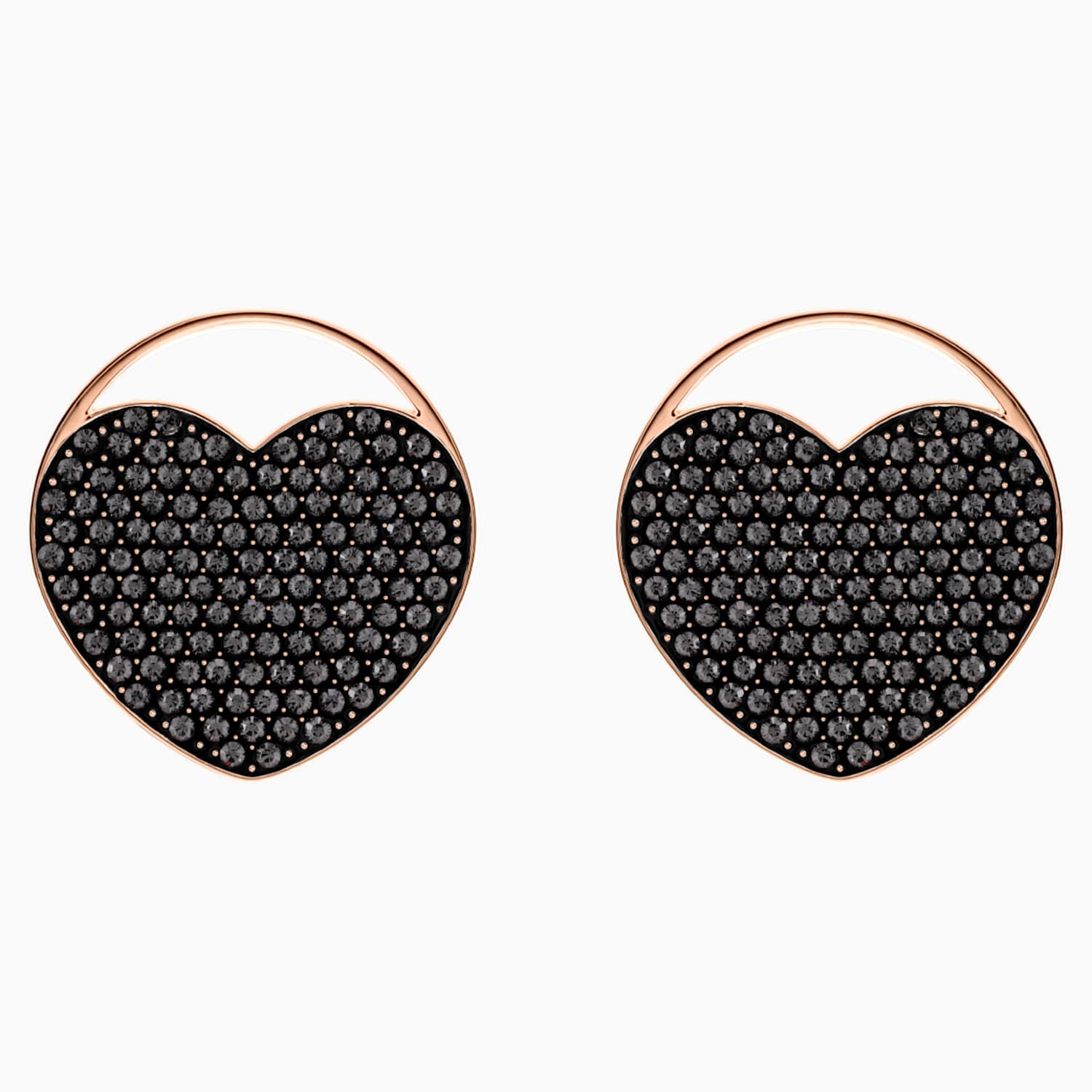 This Pair Of Rose Gold Plated Pierced Earrings Shines Elegantly In Black Crystal They Are Ideal For Adding Earings Piercings Online Earrings Swarovski Jewelry