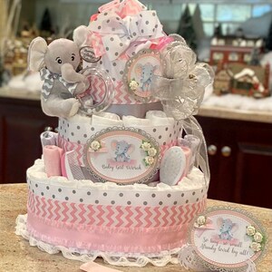 Beautirul 2 Etagen Pink Elefant Windeltorte Verziert Mit Essential Baby Geschenke Aus Pampers Windeln Kostenlose Lieferung Amazon De Baby
