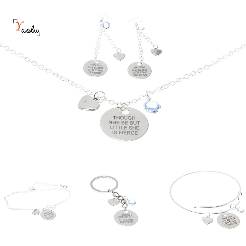 William Shakespeare Jewelry Set Though She Be But Little She Is Fierce With Heart Charm Necklace Bangle Keyring Earring Ankle Jewelry Sets Aliexpress