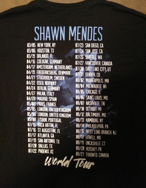 Shawn Mendes World Tour The Shawn Mendes World Tour was the first solo concert tour by. If you plan to purchase more than one item within 24 hours, please let us know and wait for a combined invoice before sending payment so that we can. Shawn Mendes World Tour 16 Concert TShirt Black L Large Cotton Graphic Tee Shawn Mendes Concert Tour TShirt;.
