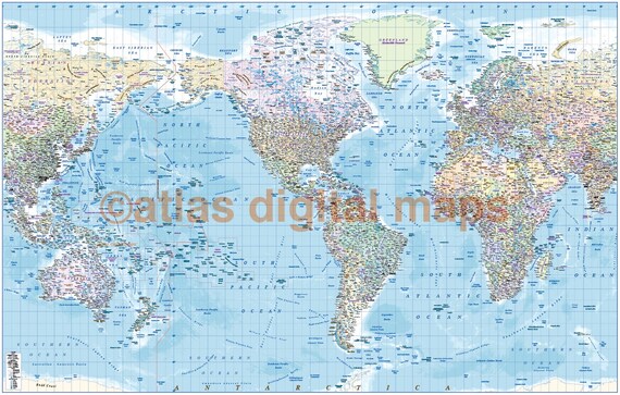 Politische Weltkarte Leinwand Uk Zentrierten Mit Schattigen Etsy
