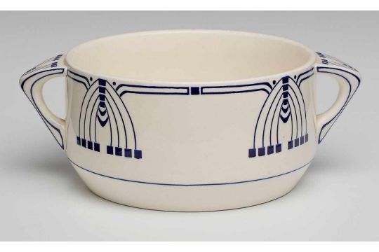Henkelschale Jugendstil Wachtersbach Um 1910 Entw Josef Maria Olbrich Weiss Glasiert Blau De