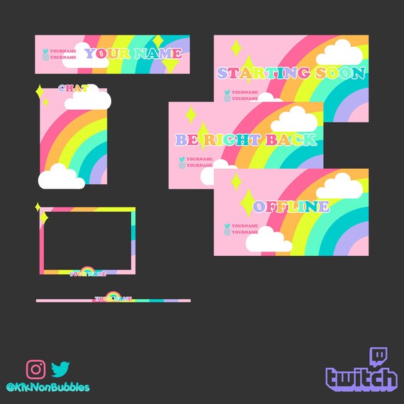 Pink Rainbow Pre Made Twitch Stream Overlay Bundle Etsy