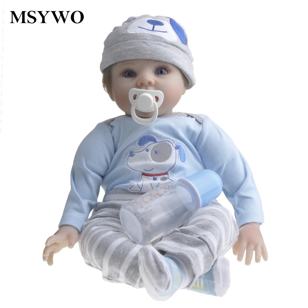 Amazon Com Realistic Reborn Baby Dolls Boy Lifelike Silicone Vinyl 22 Inches 55 Cm Weighted Body Wearing Toy Blue Dog Cute Doll Eyes Open Gift Set Toys Games